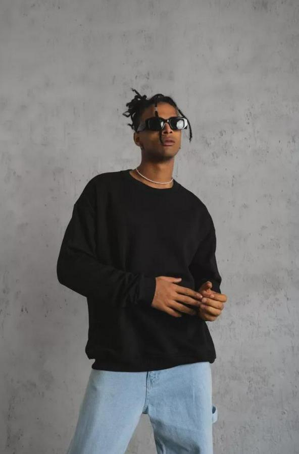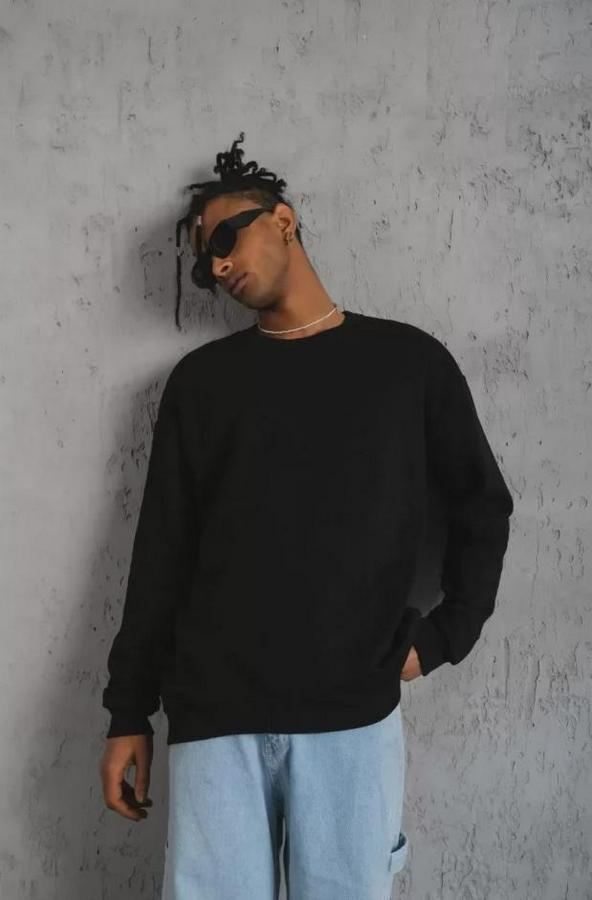 Erkek Düz Bisiklet Yaka Sweat - Siyah