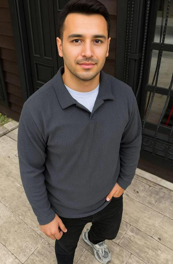 Erkek Fitilli Polar Sweatshirt – Düğmesiz Polo Yaka, Oversize Rahat Kalıp, Kalın Polar Kumaş, Kışlık Ve Baharlık Şık Günlük Üst - Füme