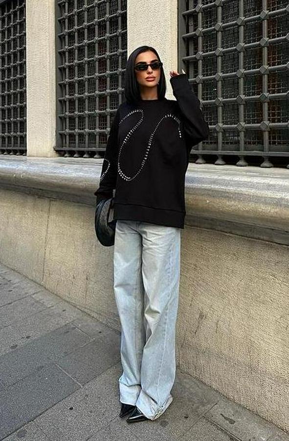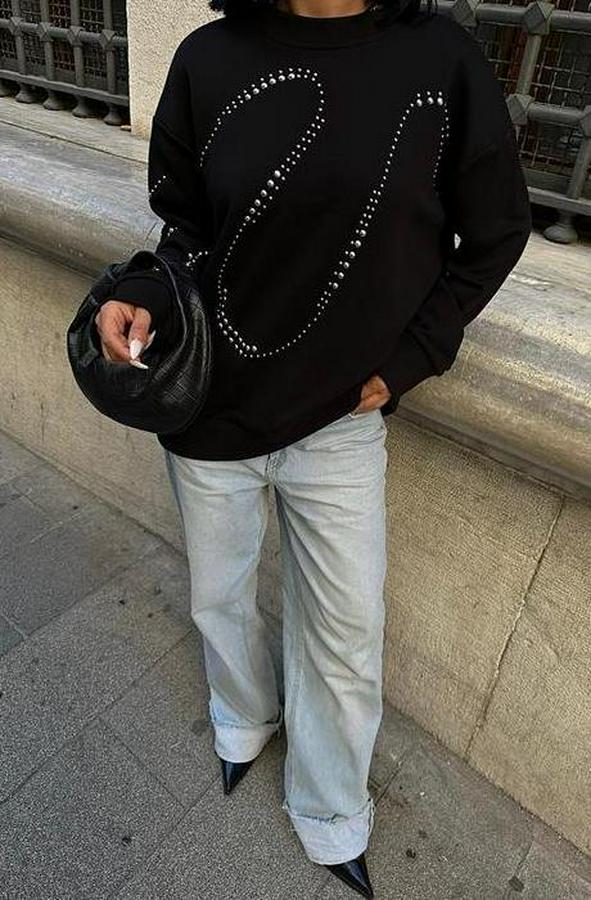 AnasayfaTüm ÜrünlerÜst GiyimSweatshirtGümüş Taşlı Sweatshirt 8052