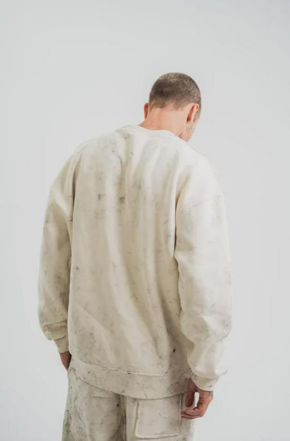 AnasayfaTüm ÜrünlerÜst GiyimSweatshirtIplik Pamuklu Yağ Yıkamalı Sweatshirt Double Oversize Bisiklet Yaka Uzun Kol