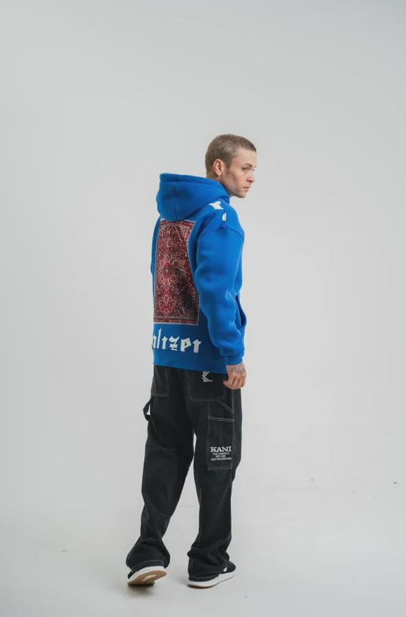Kapşonlu Double Oversize Dijital Patchli SweatShirt - Mavi