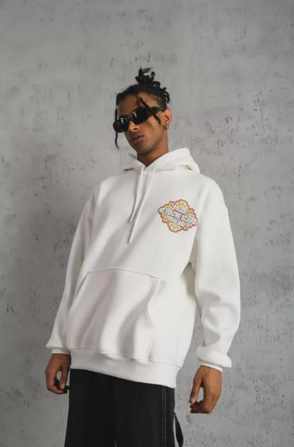 Erkek Kilim Desen Kapüşonlu Sweat- Beyaz