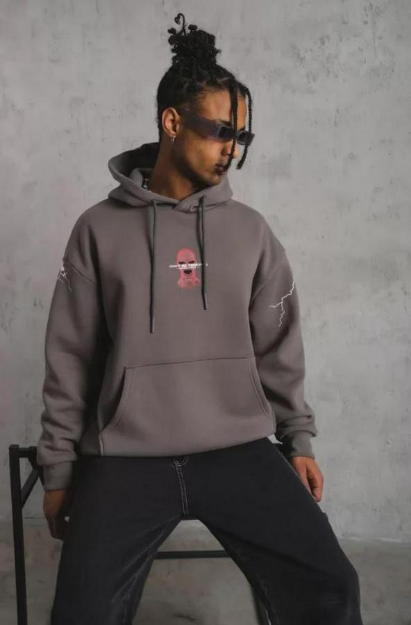 Erkek Maske Baskılı Kapüşonlu Sweat - Gri