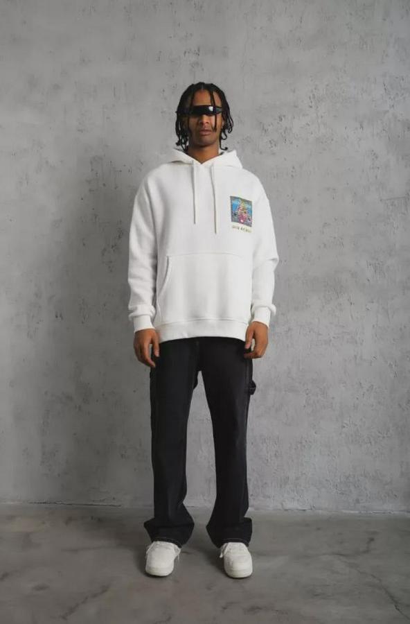 Erkek Patel Six Baskılı Kapüşonlu Sweat - Beyaz