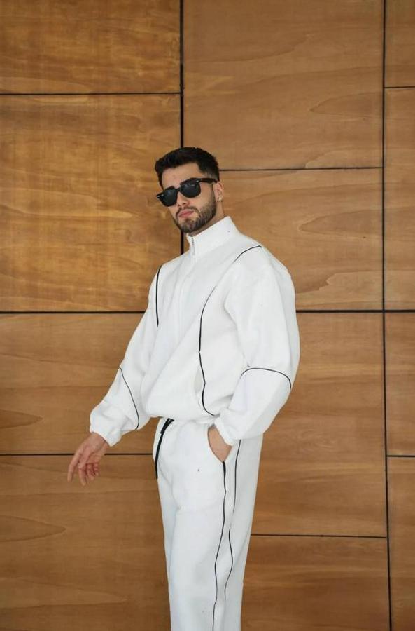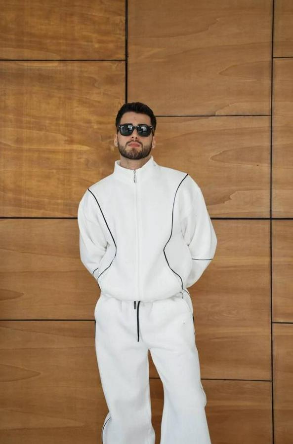Erkek Premium Parçalı Eşofman Takım - Dik Yaka Fermuarlı Biyeli Sweatshirt Lastik Paça Alt, Oversize 3 Iplik Şardonlu - Beyaz