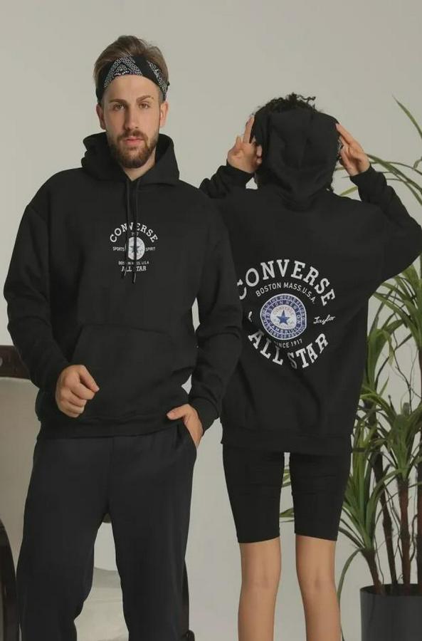 AnasayfaTüm ÜrünlerÜst GiyimSweatshirtSırt Baskılı Oversize Üç Iplik Kapüşonlu Hoodie Sweatshirt