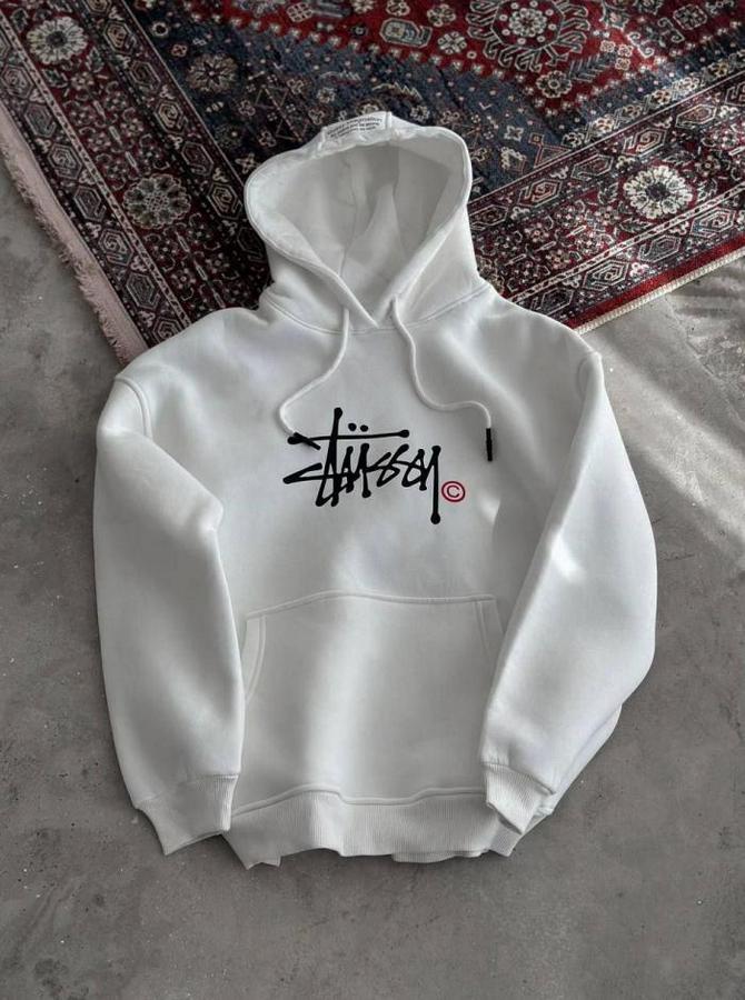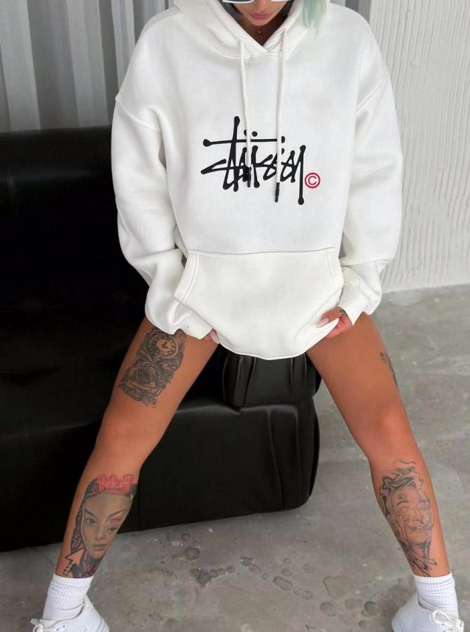 Üç İplik Kapşonlu Baskılı SweatShirt - Beyaz