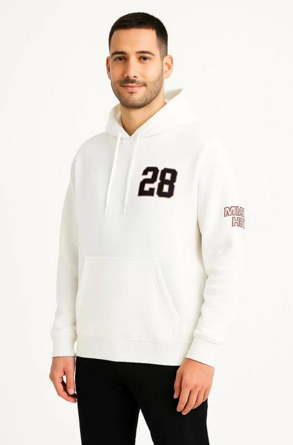 Üç İplik Kapüşonlu Ön Ve Arka Baskılı SweatShirt Hoodie - Beyaz