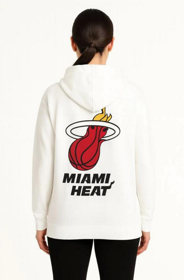 Üç İplik Kapüşonlu Ön Ve Arka Baskılı SweatShirt Hoodie - Beyaz