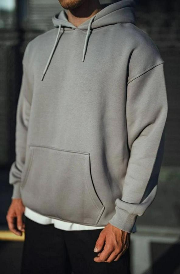 Üç İplik Penye Kapşonlu Basic SweatShirt - Boyalı Gri