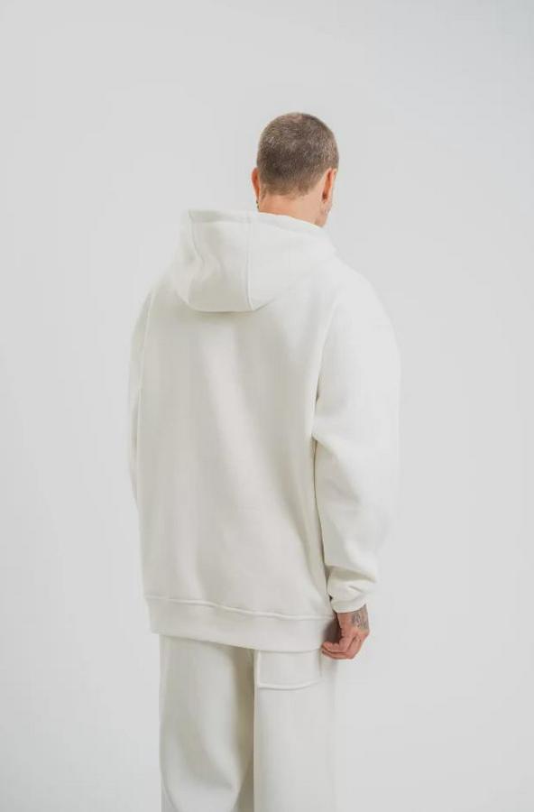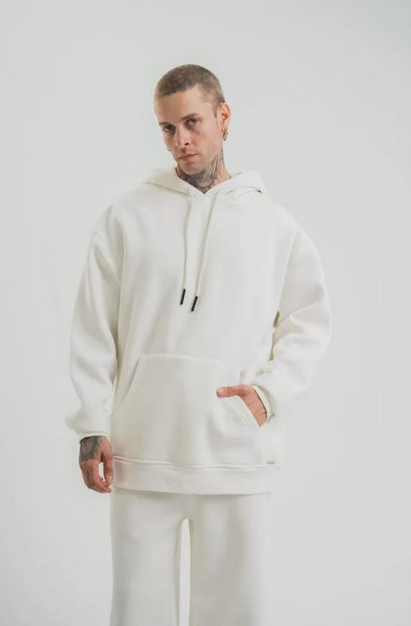 Unisex Double Oversize Kapşonlu Basic SweatShirt - Beyaz