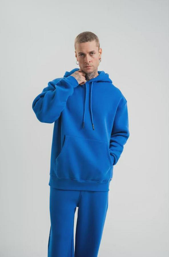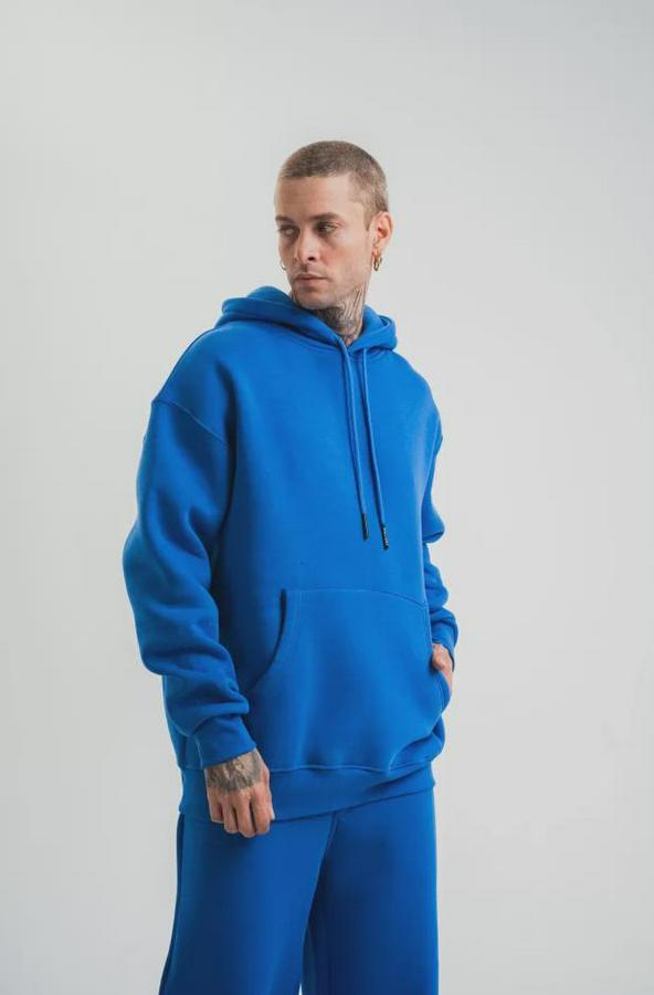 Unisex Double Oversize Kapşonlu Basic SweatShirt - Mavi