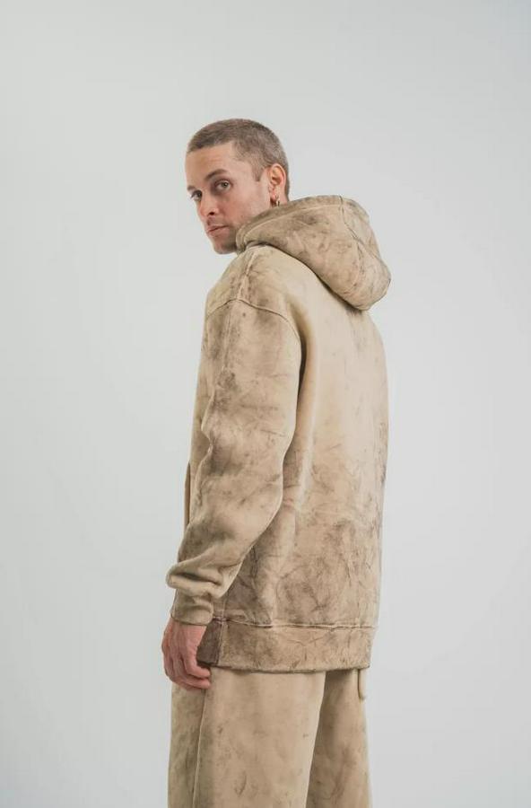 Unisex Double Oversize Kapşonlu Yıkamalı SweatShirt - Bej