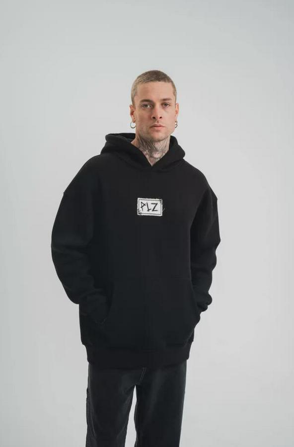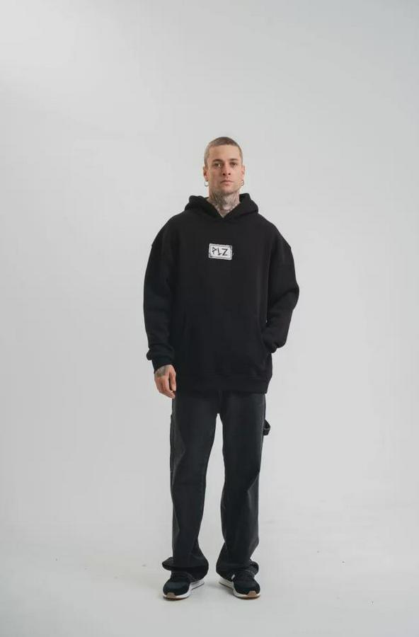 Unisex Kapşonlu Uzun Kol Patchli Nakışlı SweatShirt - Siyah