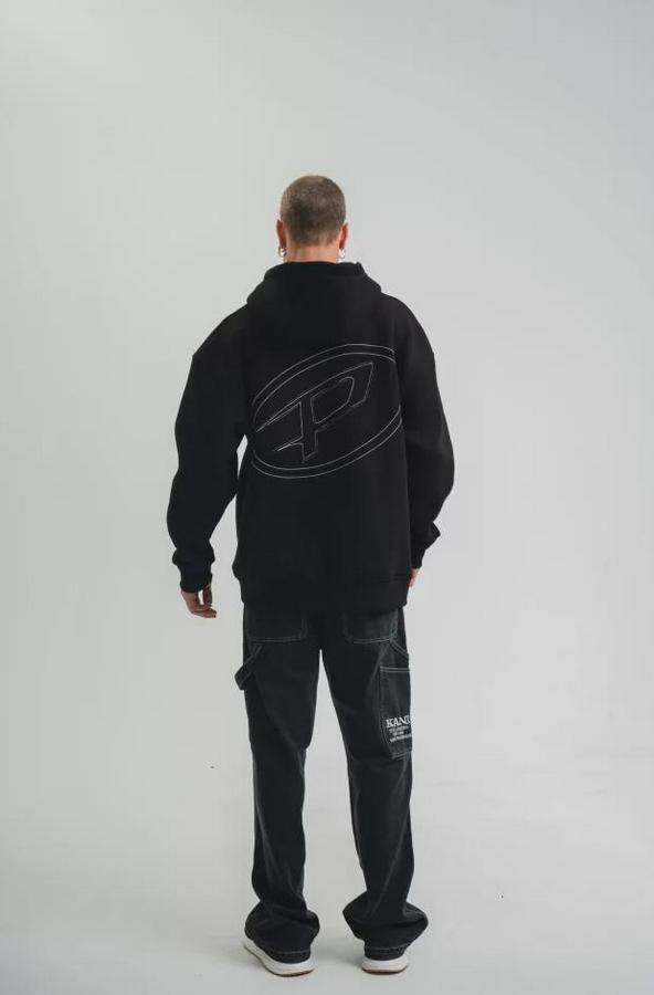 Unisex Üç İplik Kapşonlu Nakışlı SweatShirt - Siyah