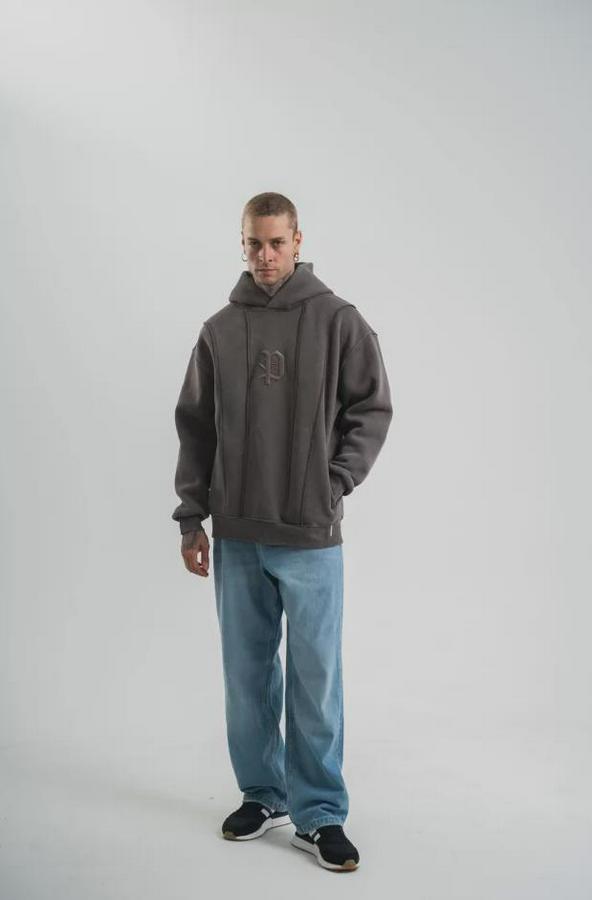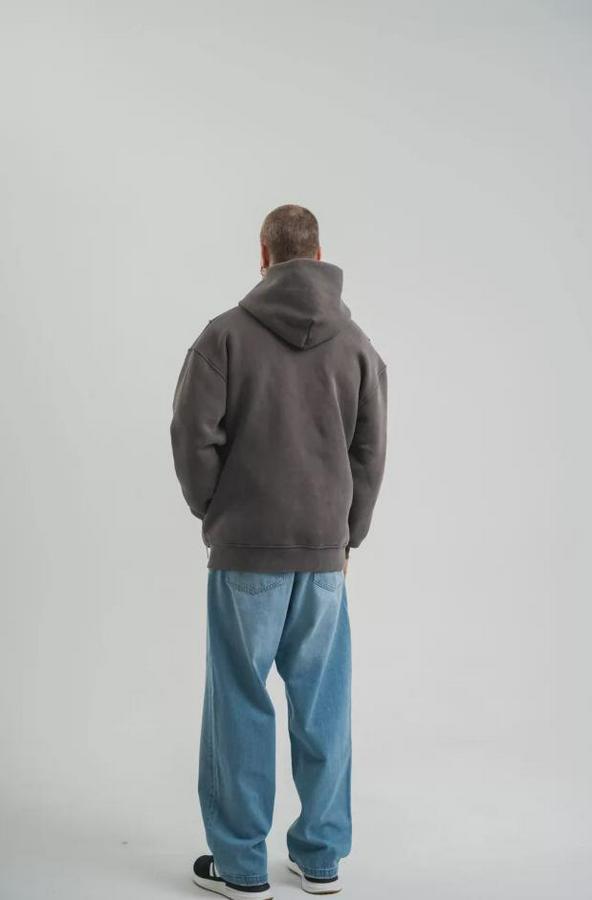 Unisex Uzun Kol Kapşonlu Yıkamalı Nakışlı SweatShirt - Füme