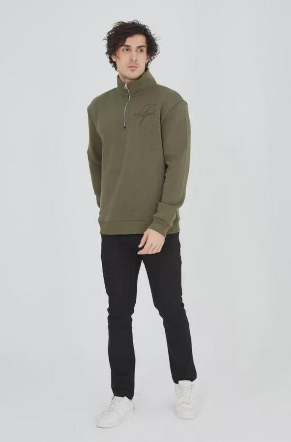 Erkek Yarım Fermuarlı Baskılı Sweat - Yeşil