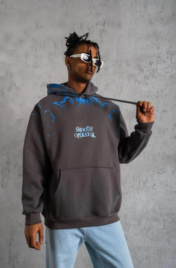 AnasayfaTüm ÜrünlerÜst GiyimSweatshirtYıldırım Baskılı Kapşonlu Sweatshirt
