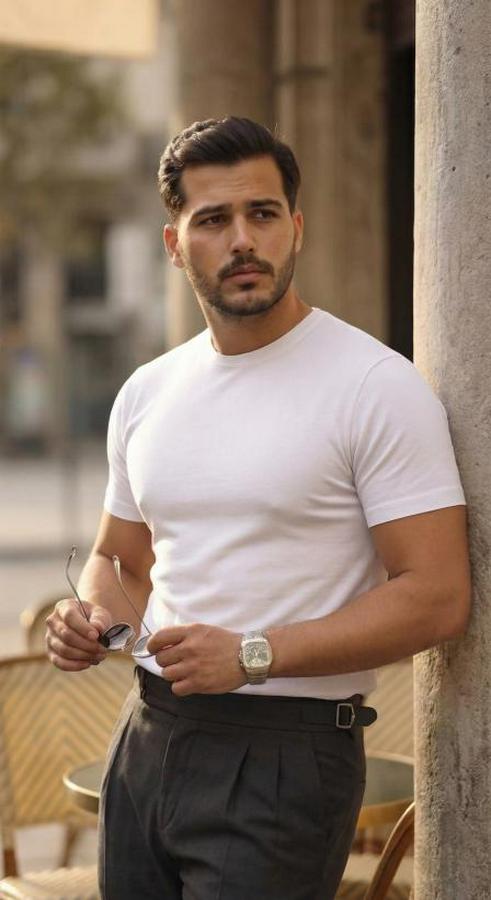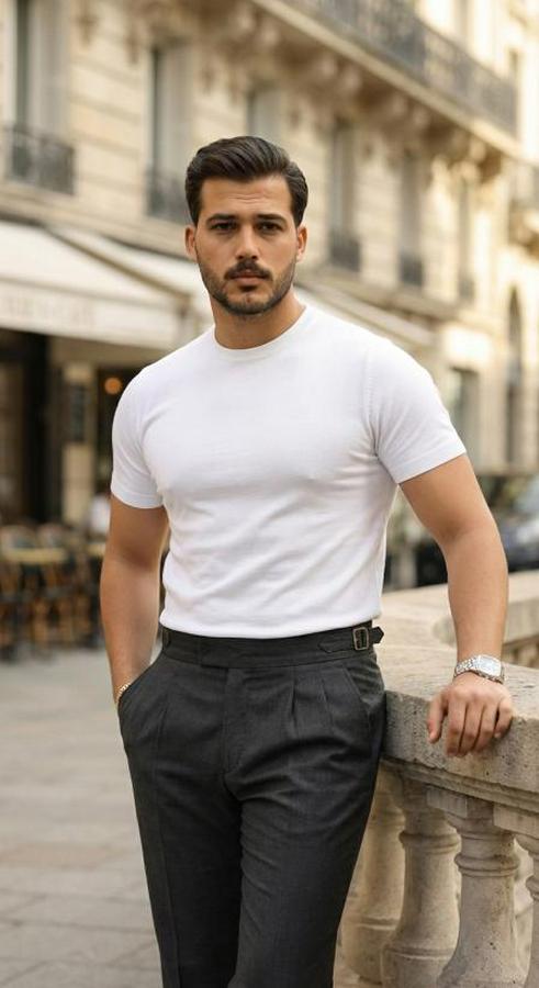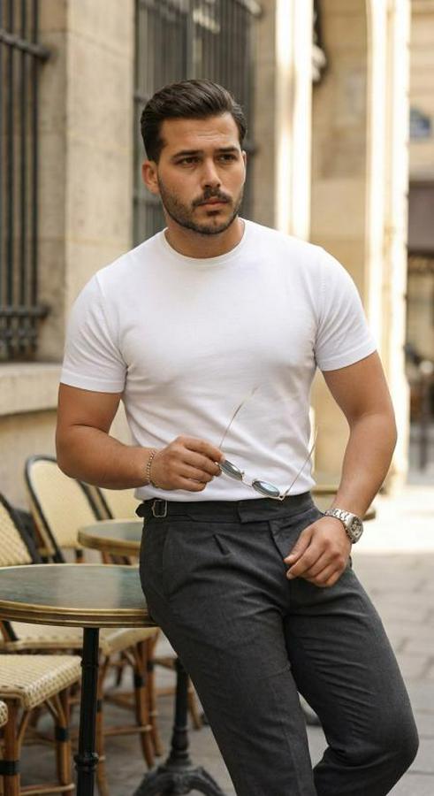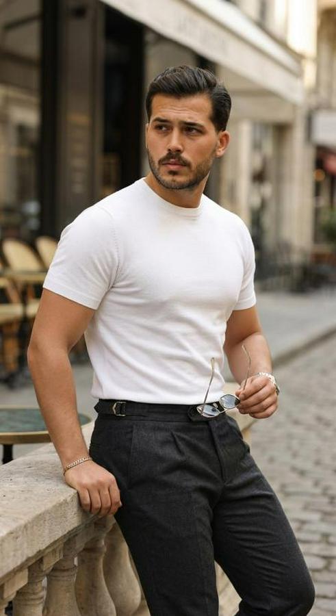 Erkek Basic Bisiklet Yaka Kısa Kollu Triko Tişört - %100 Pamuk Akrilik