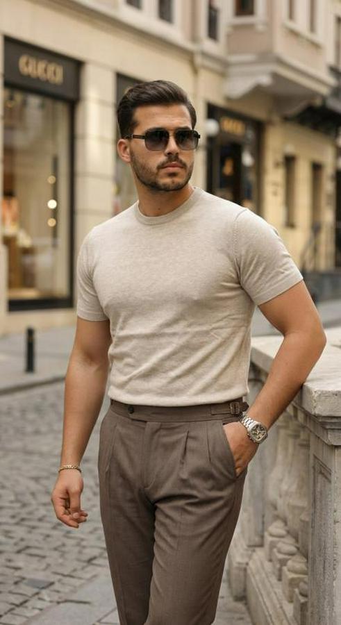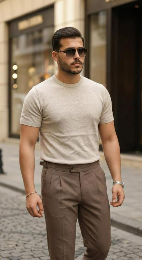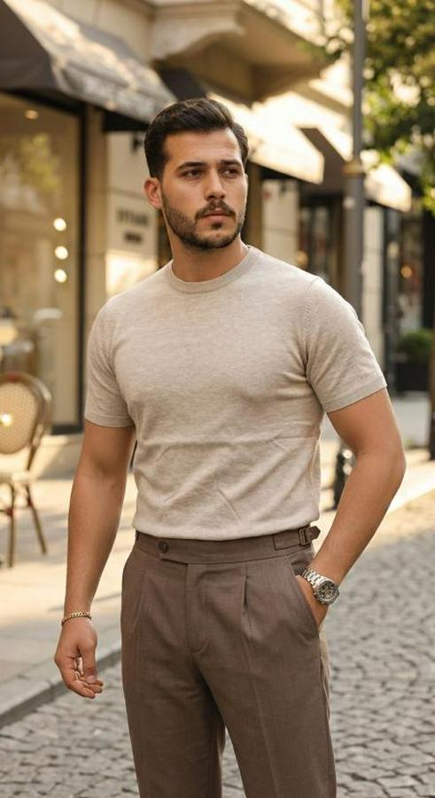 Erkek Basic Bisiklet Yaka Kısa Kollu Triko Tişört - %100 Pamuk Akrilik