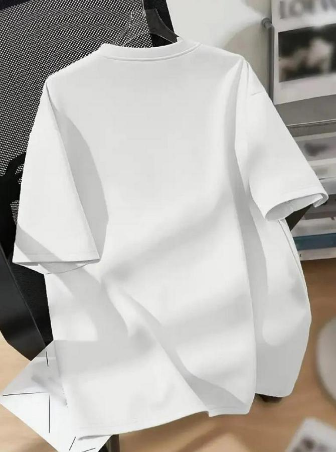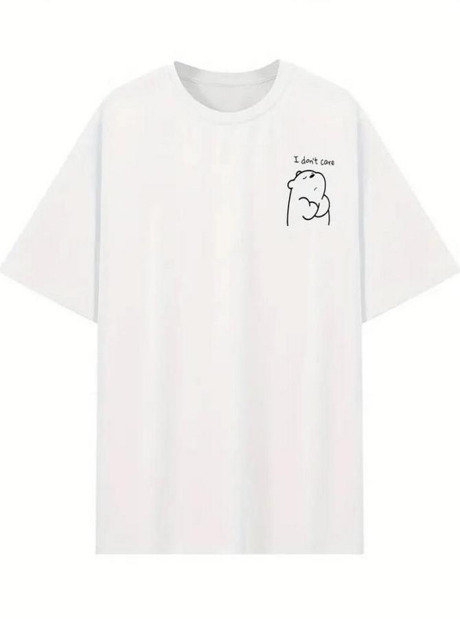 Baskılı Oversize Bisiklet Yaka T-shirt - Beyaz