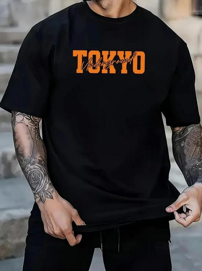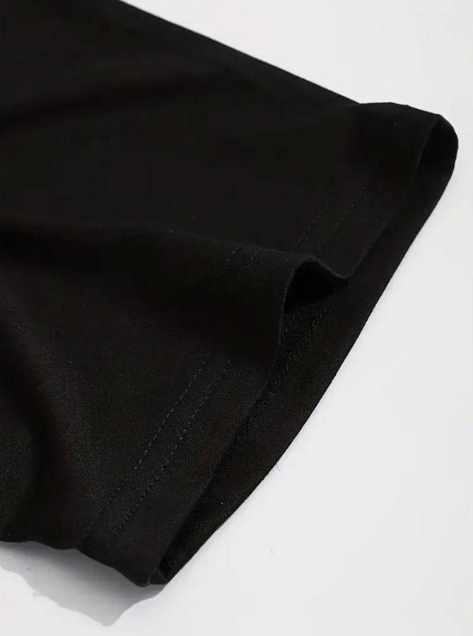 Baskılı Oversize Bisiklet Yaka T-shirt - Siyah