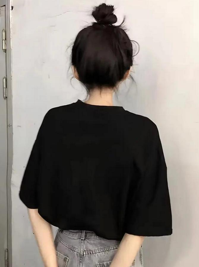 Baskılı Oversize Bisiklet Yaka T-shirt - Siyah