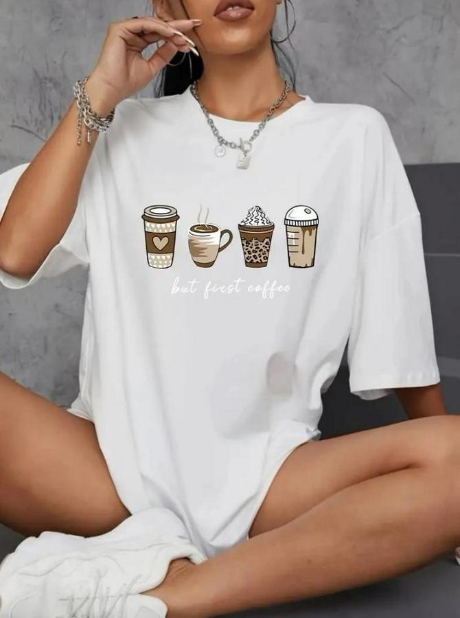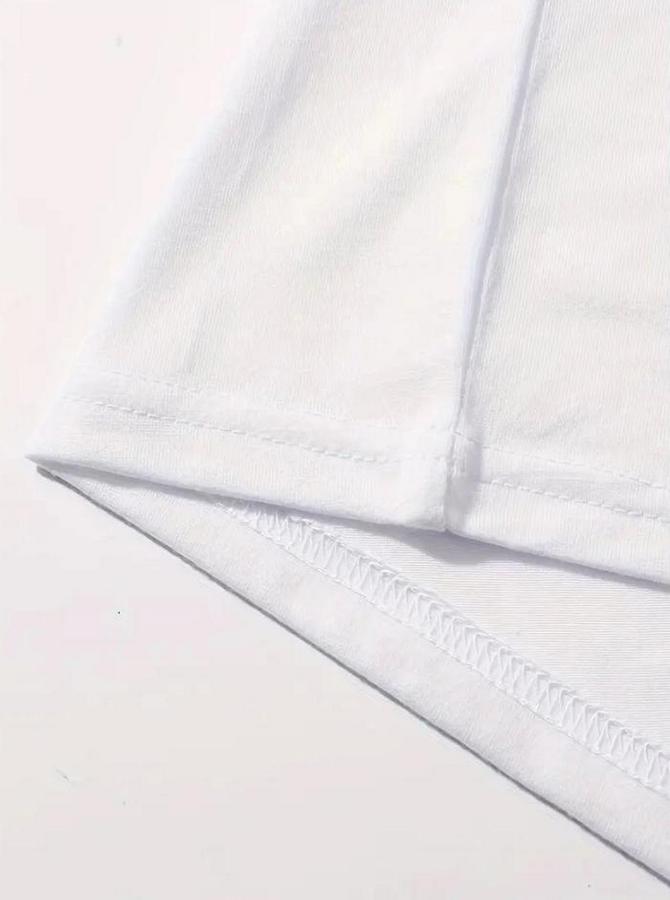 Baskılı Oversize Bisiklet Yaka T-shirt - Beyaz