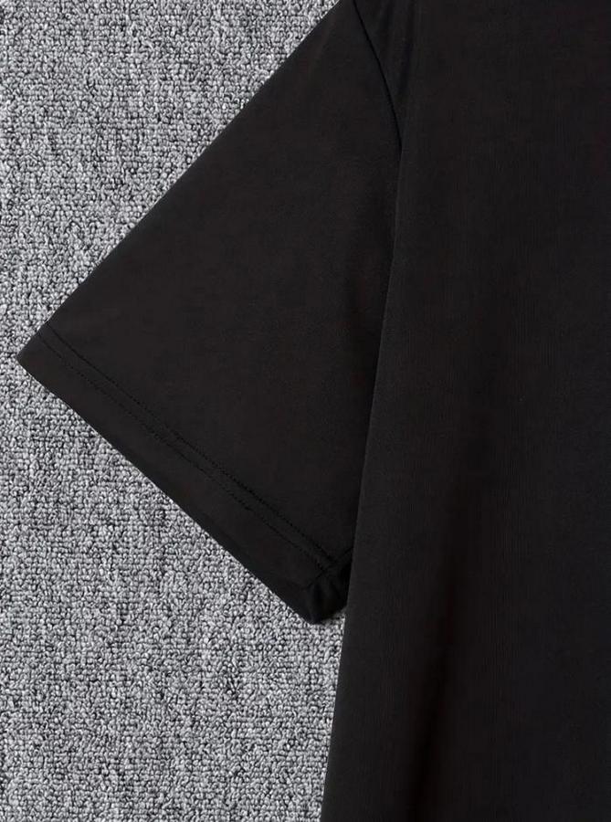 Baskılı Oversize Bisiklet Yaka T-shirt - Siyah