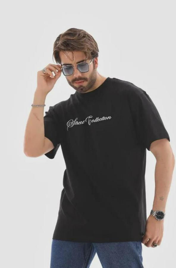 Erkek Baskılı T-Shirt Kısa Kol Bisiklet Yaka Regular Fit Rahat Kalıp Günlük Tişört - Siyah