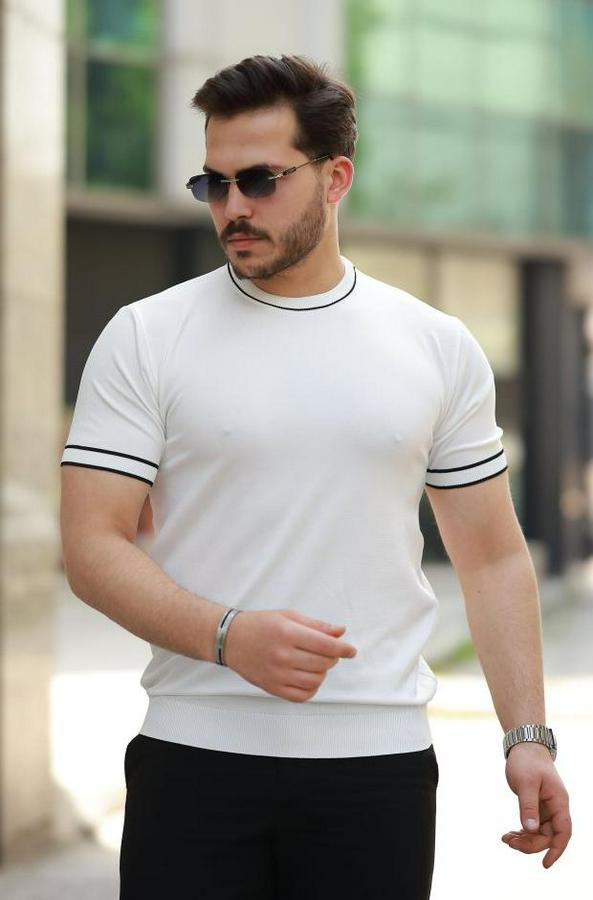 Erkek Bisiklet Yaka Ribanalı Kısa Kollu Tshirt