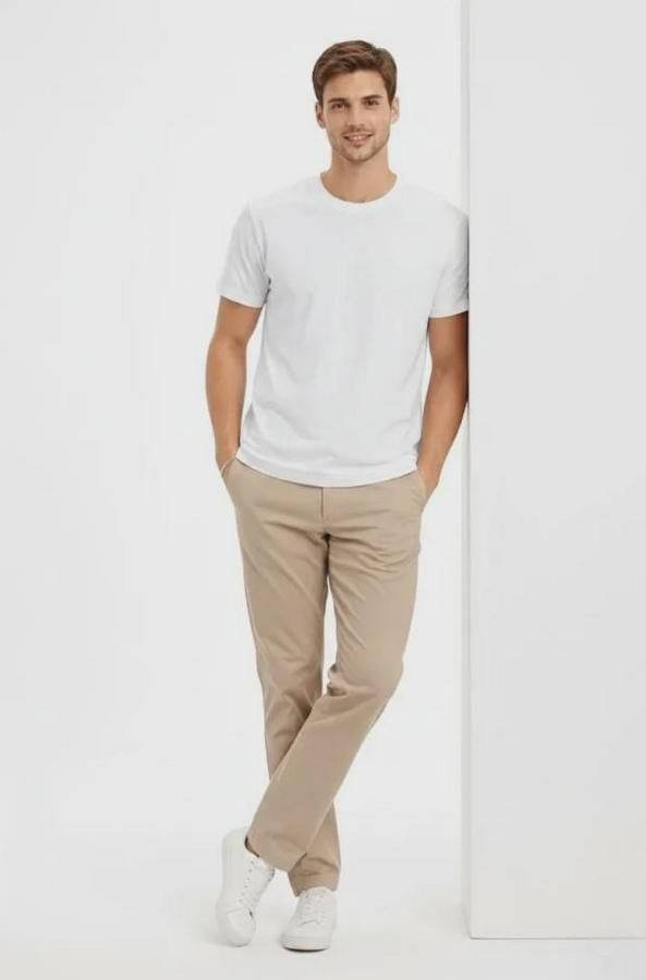 Erkek Bisiklet Yaka Tişört Regular Kalıp Basic Pamuklu Günlük Kullanım T-shirt - Beyaz