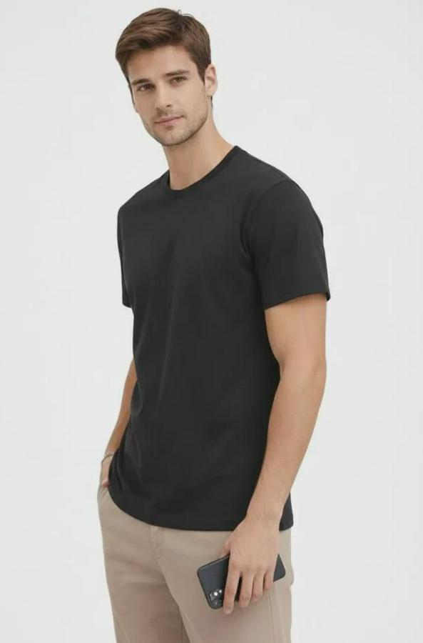 Erkek Bisiklet Yaka Tişört Regular Kalıp Basic Pamuklu Günlük Kullanım T-shirt - Siyah