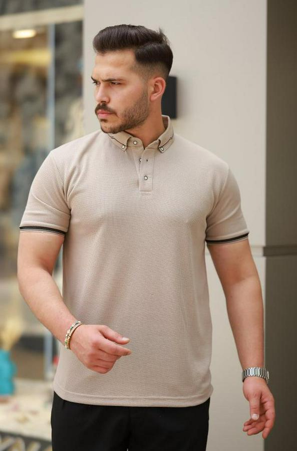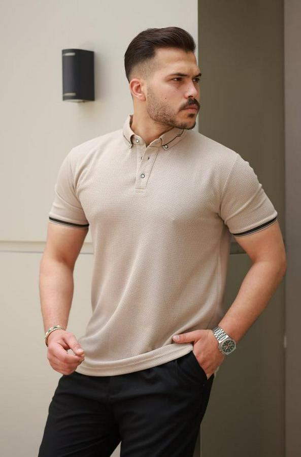 Erkek Düğmeli Yaka Waffle Kumaş Kısa Kollu Tişört