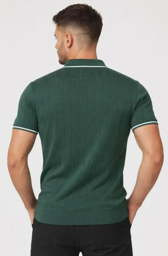Erkek Fermuarlı Yaka Fitilli Triko Kısa Kollu Regular Fit Tişört T-shirt - Yeşil