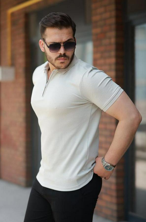 Erkek Fermuarlı Yaka Kısa Kollu Tişört
