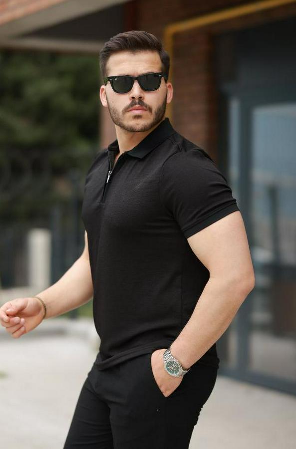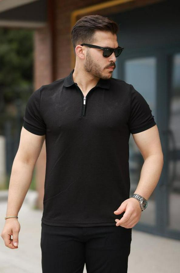 Erkek Fermuarlı Yaka Kısa Kollu Tişört