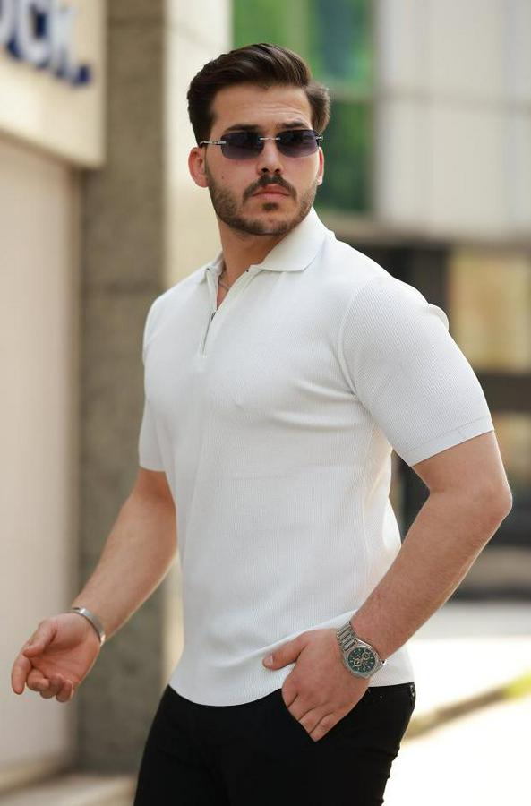 Erkek Fermuarlı Yakalı Kısa Kollu Tshirt