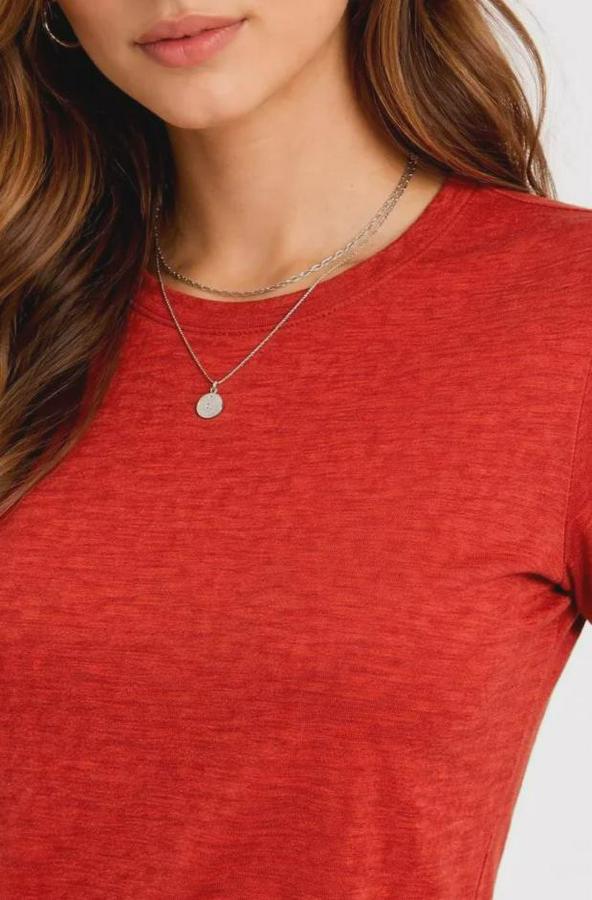 Flam Kumaş Melanj Dokulu Regular Fit Tişört Bisiklet Yaka Yazlık T-Shirt - Kiremit
