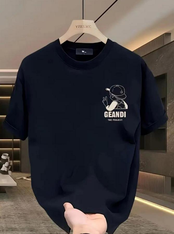 Geniş Kesim Pamuklu Tişört - GANDHI The Project Baskılı, Siyah, Rahat Kesim, Kısa Kollu, Günlük Kıyafet, Her Gün Giyilebilecek Tişört- Siyah