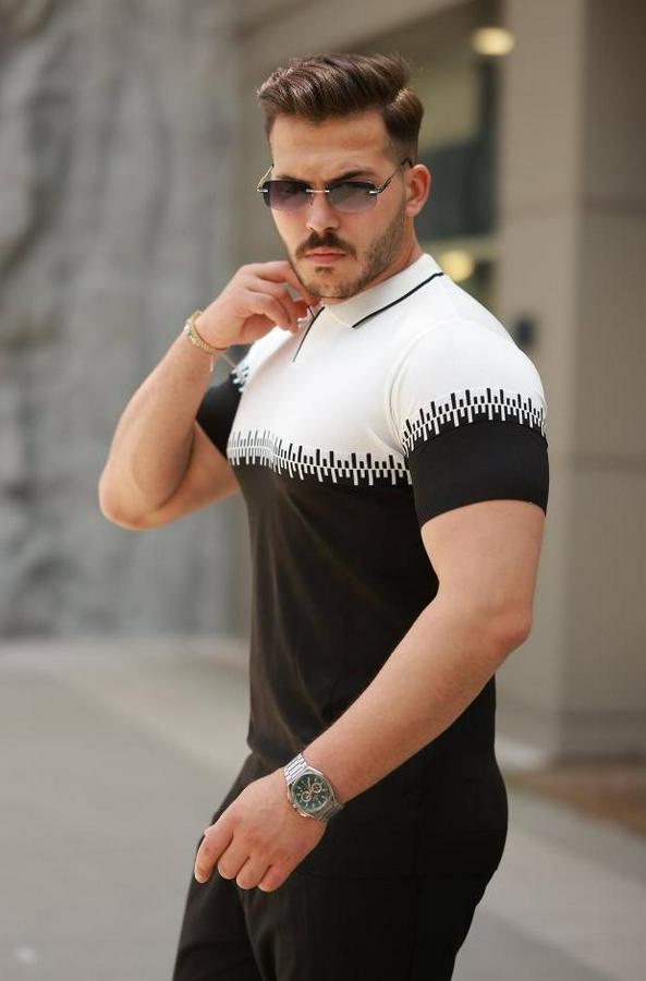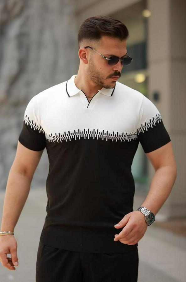 Erkek Hemşire Yaka çift Renk Kısa Kollu Tişört
