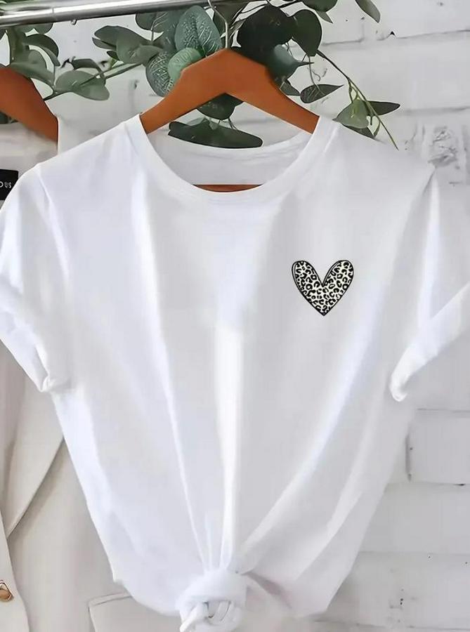 AnasayfaTüm ÜrünlerÜst GiyimT-ShirtKadınlar Için Şık Leopar Kalp Baskılı Günlük Tişört
