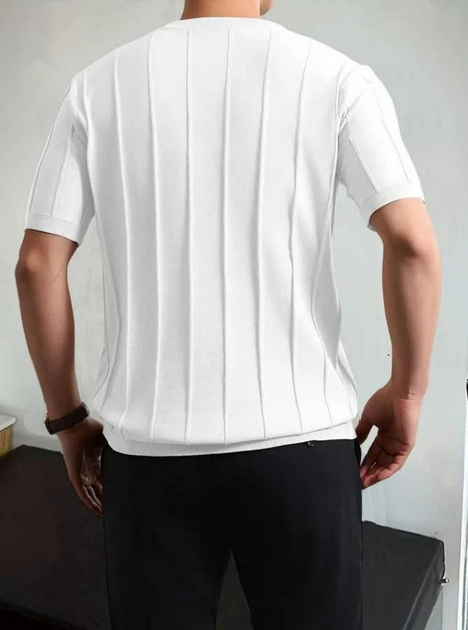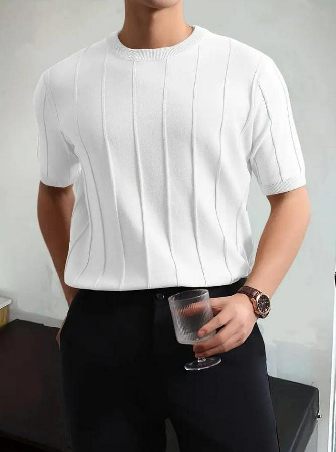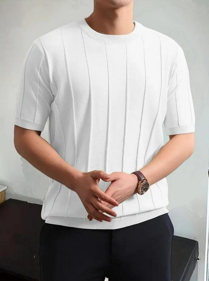 AnasayfaTüm ÜrünlerÜst GiyimT-ShirtKısa Kollu Bisiklet Yaka Çizgili Triko Tshirt