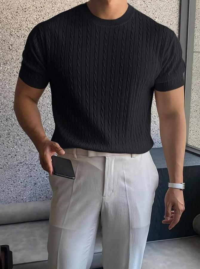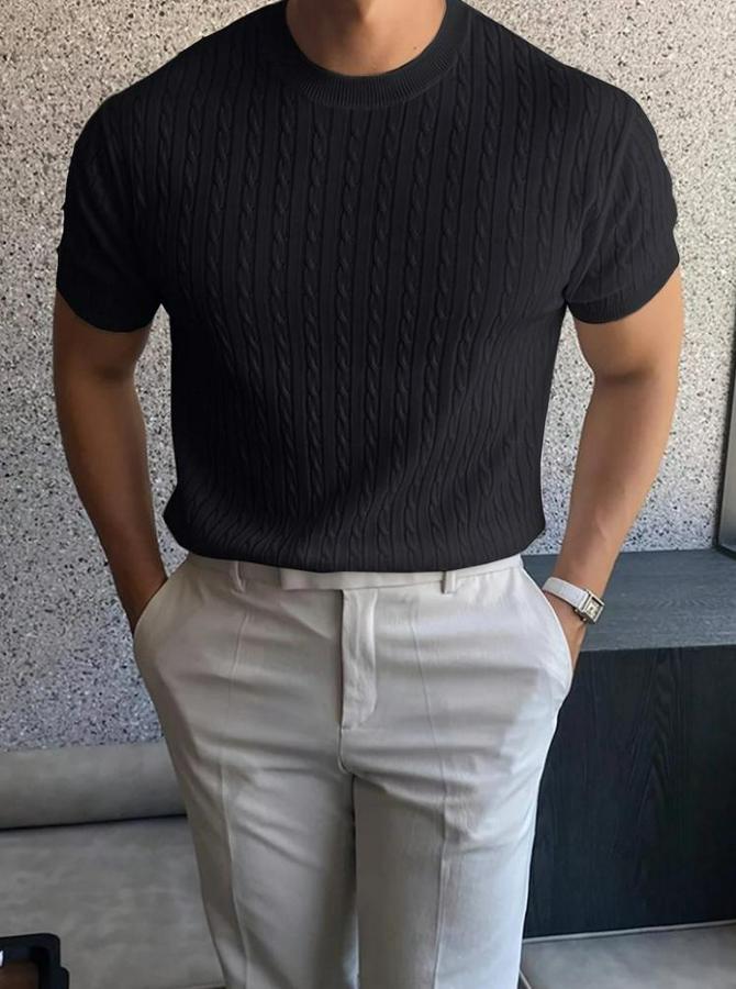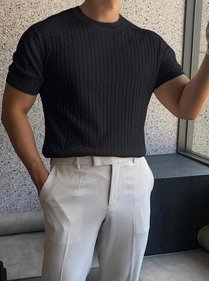 Erkek Kısa Kollu Bisiklet Yaka Triko Bluz