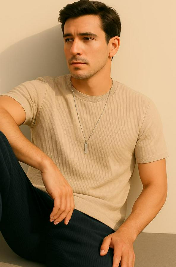 AnasayfaTüm ÜrünlerÜst GiyimT-ShirtKısa Kollu Çizgi Kabartma Detaylı T-Shirt