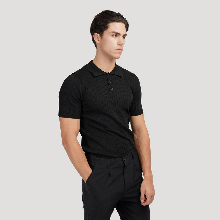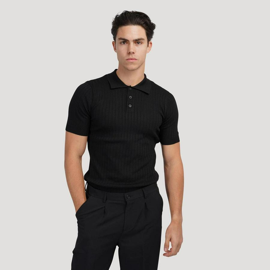 Erkek Kısa Kollu Yakalı Yakadan Düğmeli Triko Bluz