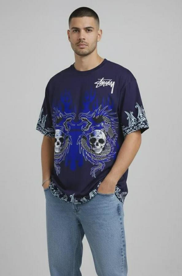 AnasayfaTüm ÜrünlerÜst GiyimT-ShirtLacivert Oversize Tişört Dragon