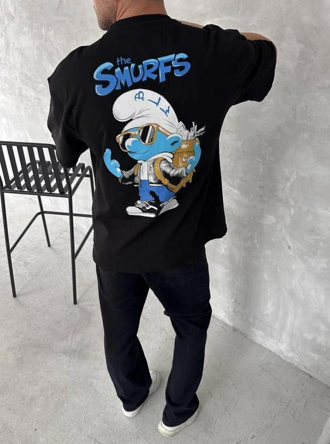 Ön Ve Arka Baskılı Oversize Bisiklet Yaka T-shirt- Siyah