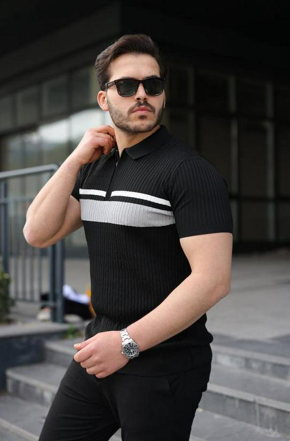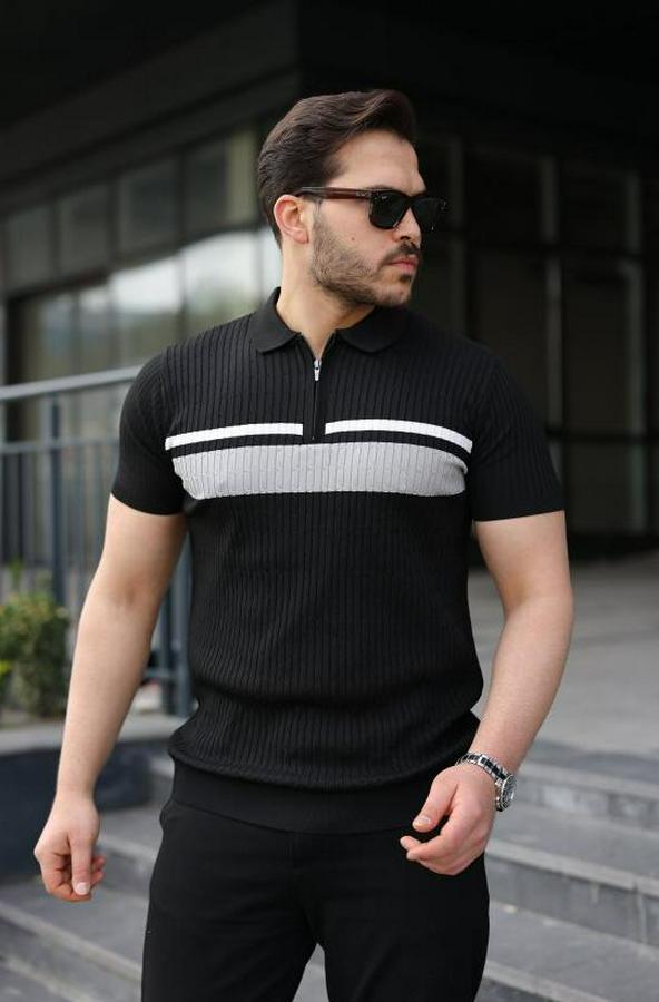 Erkek Örgü Desenli Renkli Kısa Kollu Triko Tişört