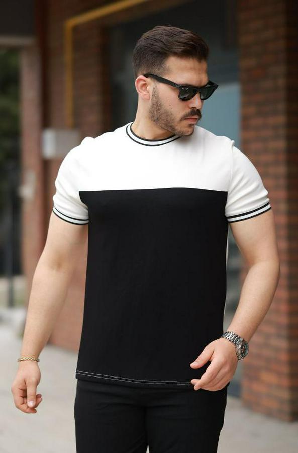 AnasayfaTüm ÜrünlerÜst GiyimT-ShirtParçalı Renk Kısa Kollu Tişört